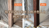 古びた柱を掃除して塗装すると、見違えるほどきれいになりました。