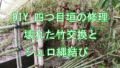柱のささくれなどで手を傷つけるかもしれないので、ビニール手袋をし、汚れを吸い込まないためマスクを準備。